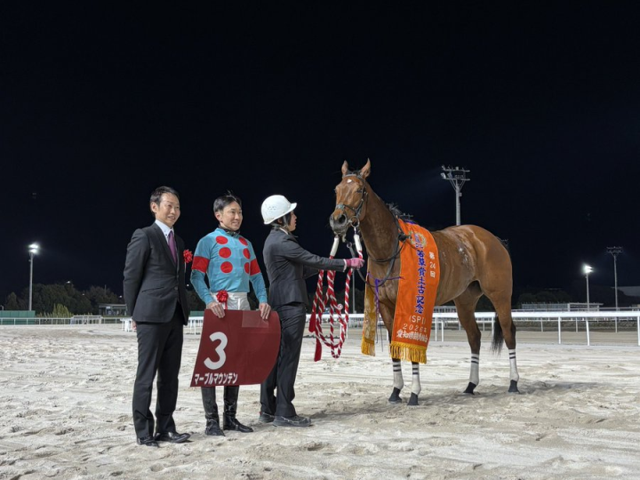 このたび、当クラブ所属の マーブルマウンテン号(牝5、父:Soldier's Call/母:マラリカ、大井・藤田輝信厩舎、英国産)が、3月12日(木)に名古屋競馬場で開催されました 地方重賞レース「若草賞土古記念」において、見事優勝いたしました。関係者の皆様ならびに応援いただきましたファンの皆様に、心より御礼申し上げます。